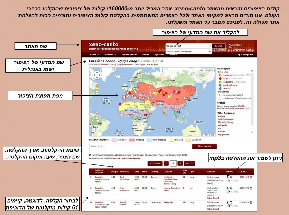 שרטוט הסבר מאת קלריטה ואפריים על הורדת הקולות מאתר https://xeno-canto.org/